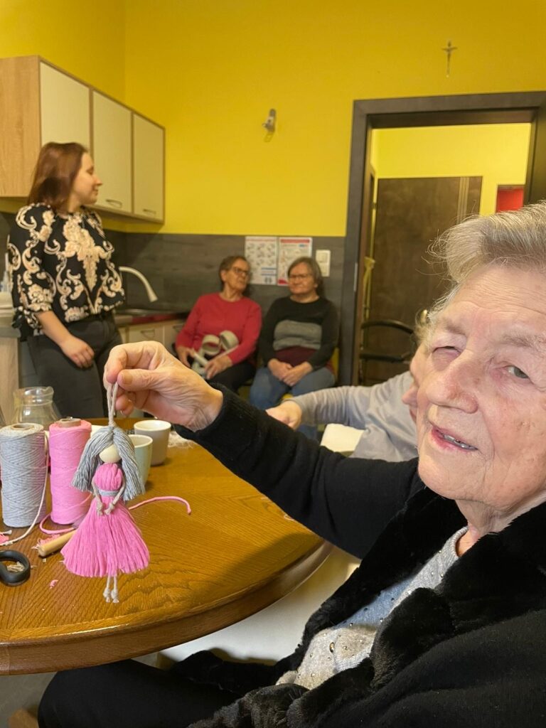 Dzisiaj uczestnicy Dziennego Domu Pomocy w Obornikach aktywnie uczestniczyli w zajęciach z terapii zajęciowej. Stworzyli piękne makramowe anioły, a następnie wspólnie zagrali w grę umysłową polegającą na odgadnięciu jakim jest się zwierzęciem.