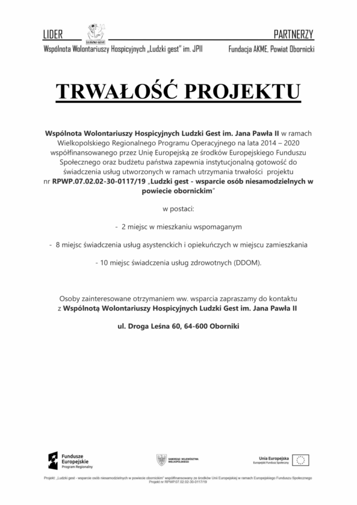 „Ludzki gest – wsparcie osób niesamodzielnych w powiecie obornickim” – Trwałość projektu
